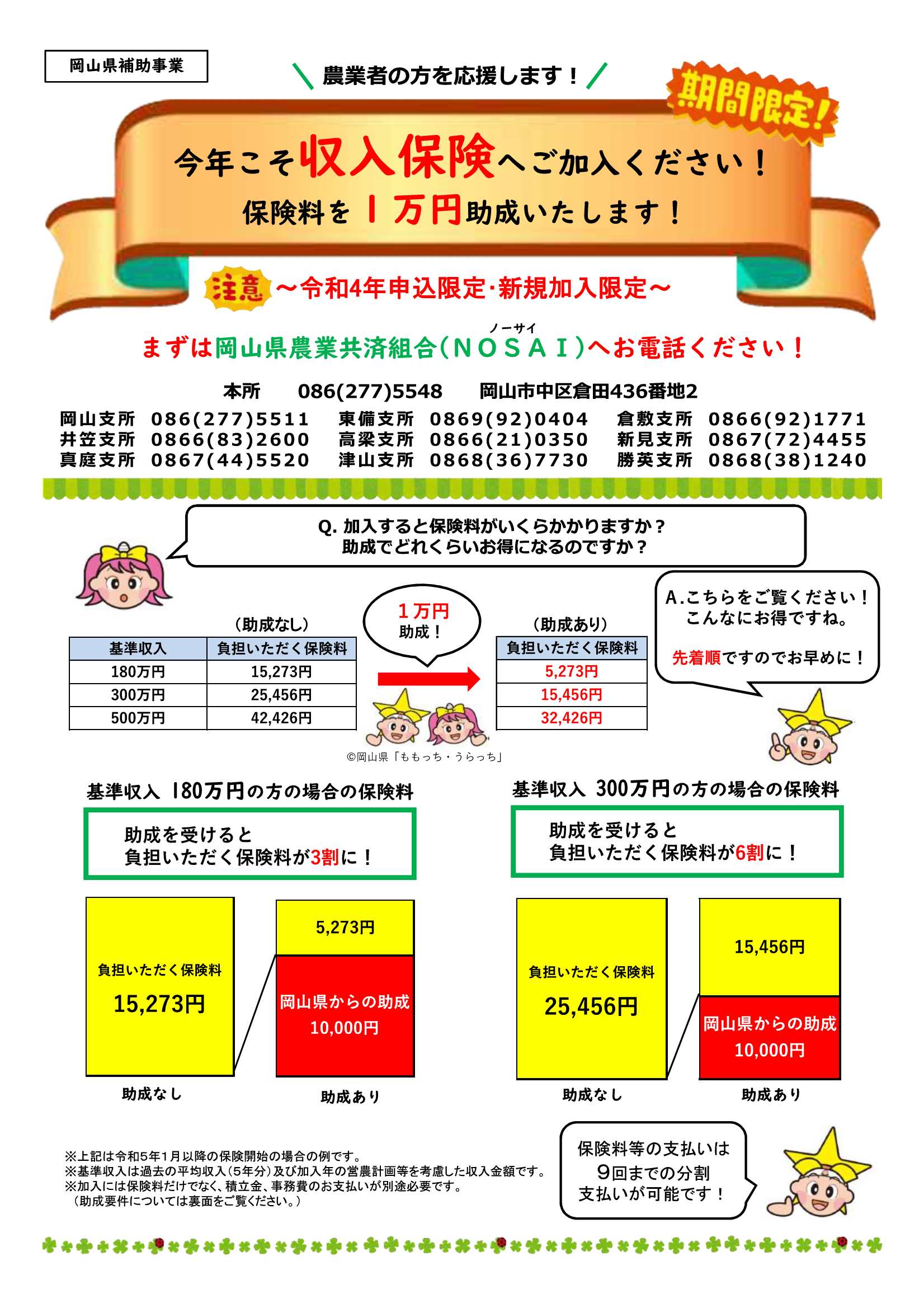 また、令和6年1月1日以降の保険契約から、保険方式のみで基準収入の9割を補償限度とする補てん方式が選択できるようになりました。
