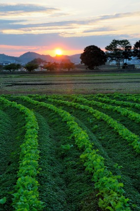 畑の夕暮れを太陽とバランスよく撮られた作品です。背景をよく見ると国分寺付近であることがわかります。吉備路の代表である五重塔以外でも絵になる場所があるものだと感じた写真です。 |