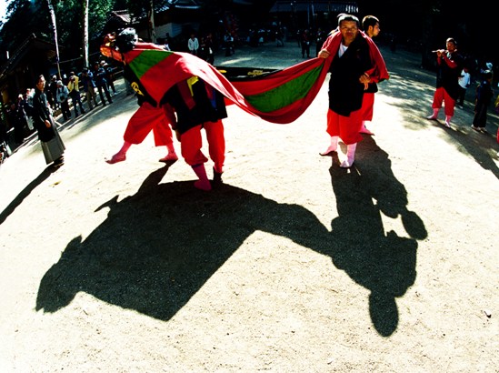 背景は林でしょうか。黒く落ちて主題が強調され、太鼓を中心にしてシンメトリーに撮られた絵作りが成功しています。 |