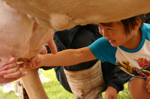 | 佳 作 | 「出るかな」 | 乳搾りを体験している興味津々の笑顔がいいですね。ほほえましい光景を的確なシャッターチャンスで撮られています。 |
