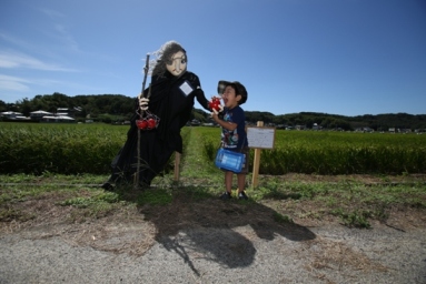 かかしの写真は多くみられましたが、ドキュメント風に撮られているこの写真を選びました。主題を見せるためストロボを使っていますが、果実の赤が強調され、青空と虫かごとのコントラストがいいと思います。 |