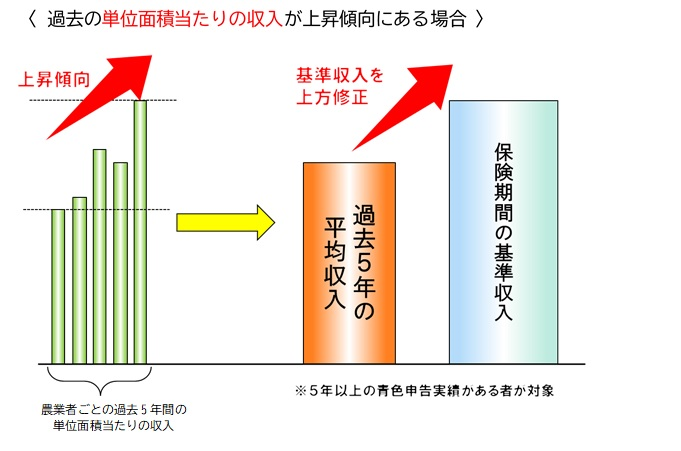 過去の平均よりも拡大する場合や、過去の単位面積当たりの収入に上昇傾向がある場合には、基準収入は上方修正ができます。