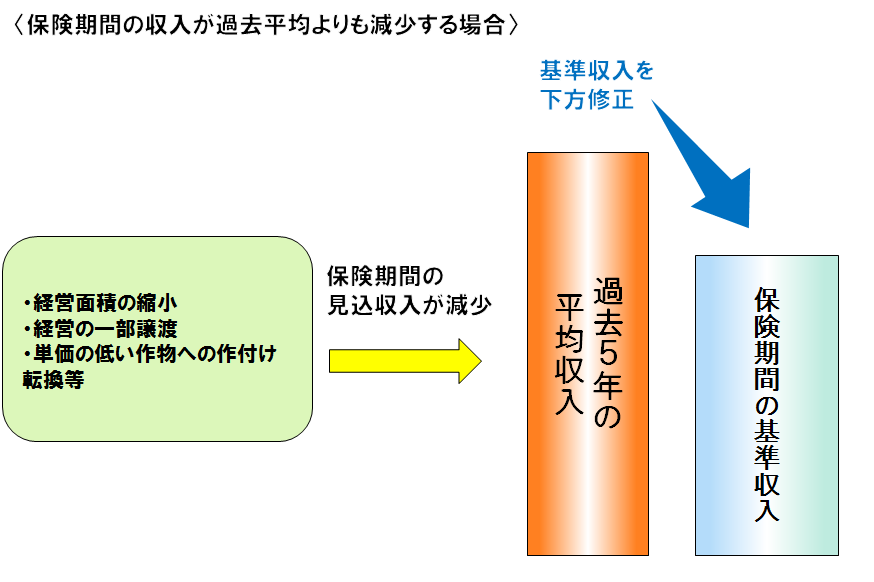 また、気象災害に被災した年の農業収入をその年の基準収入の8割まで上方修正できるようになりました(気象災害特例)。