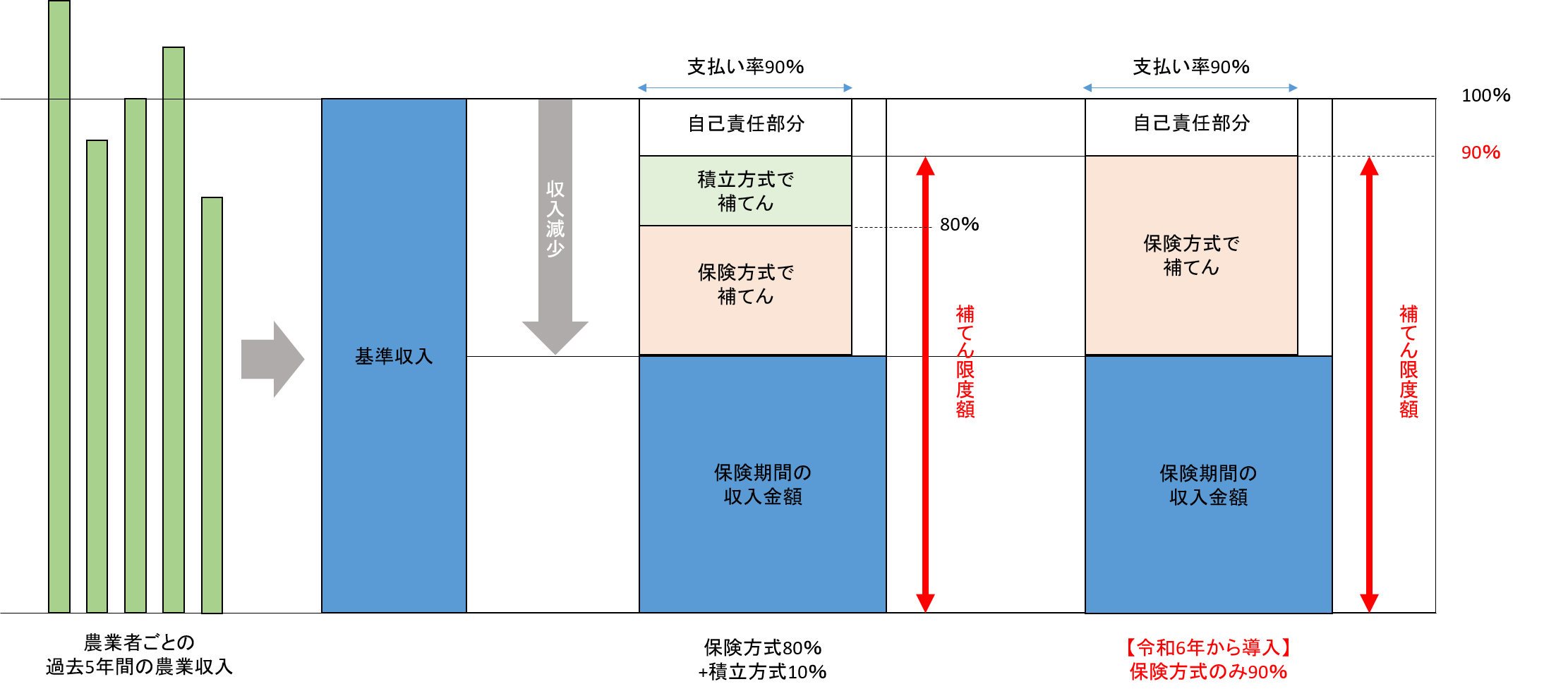 また、令和6年1月1日以降の保険契約から、保険方式のみで基準収入の9割を補償限度とする補てん方式が選択できるようになりました。