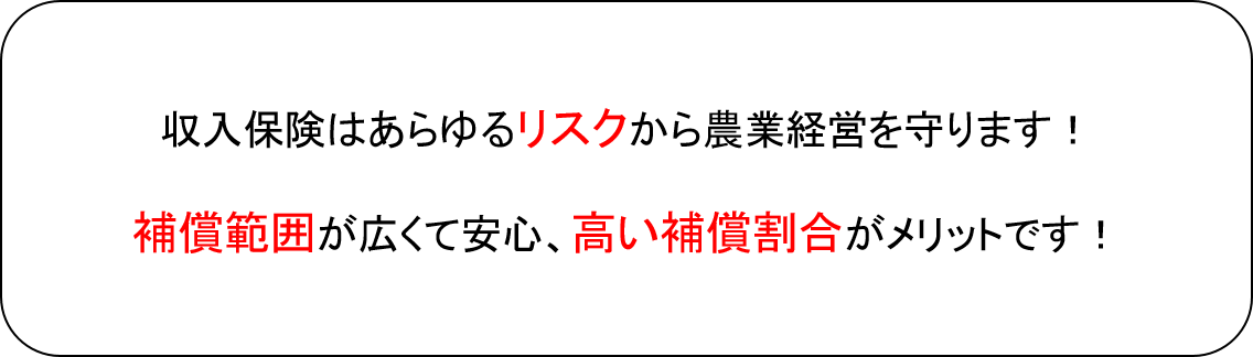 全ての農産物を対象に、以下のような自然災害による収量減少や新型コロナウイルスを要因とする価格低下等の農業者の経営努力では避けられない収入減少を広く補償します。