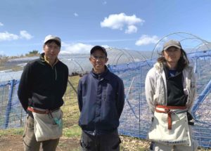 「多くの人に是里の魅力を知ってほしい」と話す田村さん(中央)、木下さん(右)、森田さん  赤磐市是里(これさと)に新規就農者として移住し、ブドウの栽培を始めた3人が、是里地域で昔から栽培される「...