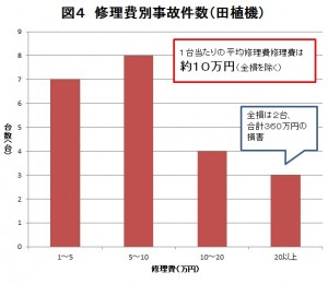 そのため、他の農機具に比べ、修理費や調整費が多くかかる傾向にあります。1事故当たりの平均修理費用(全損を含まない)が約10万円を超えています(図4)。
